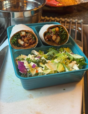 BBQ chicken wrap lunch with copped salad